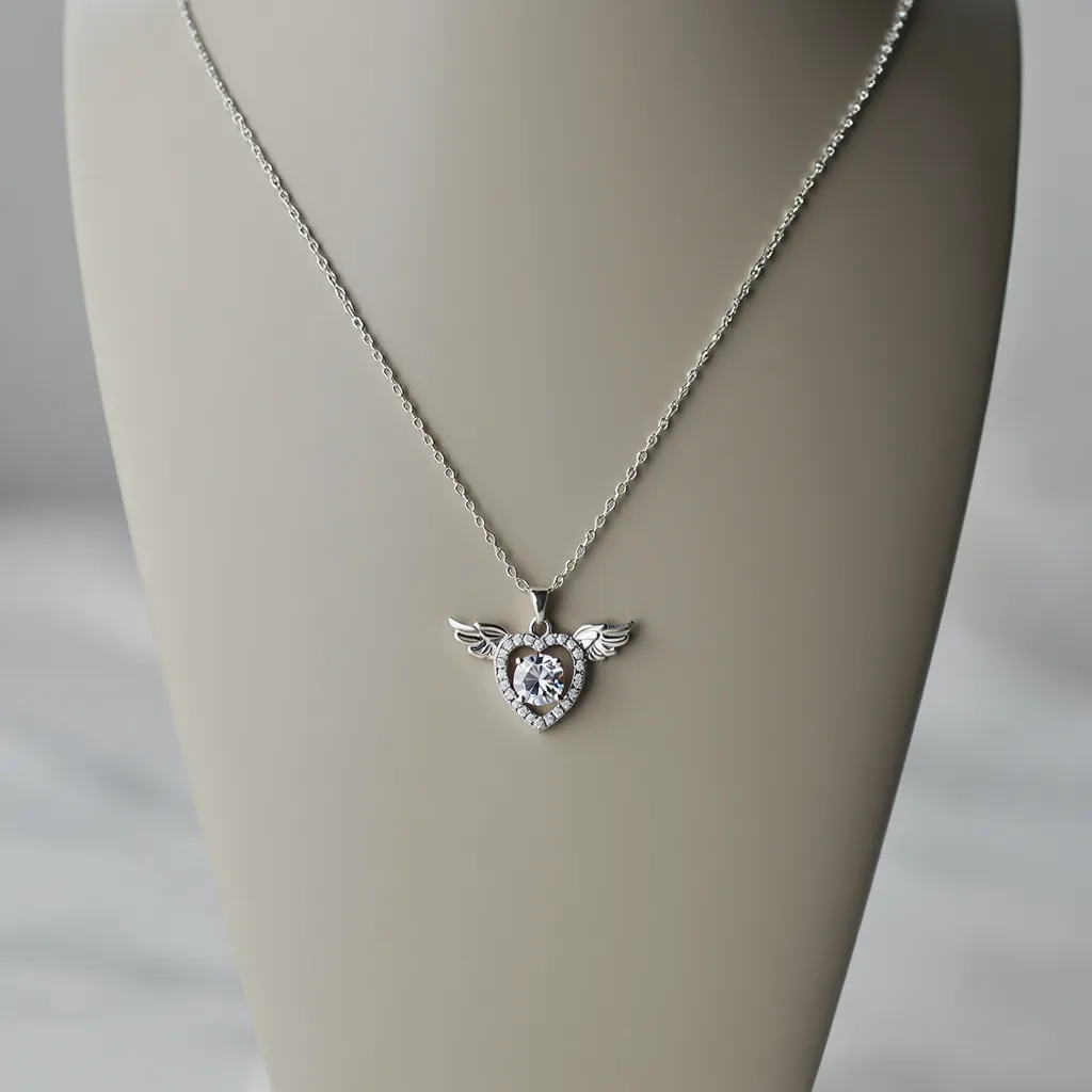 گردنبند قلب بالدار نقرهای با سنگ کریستالی